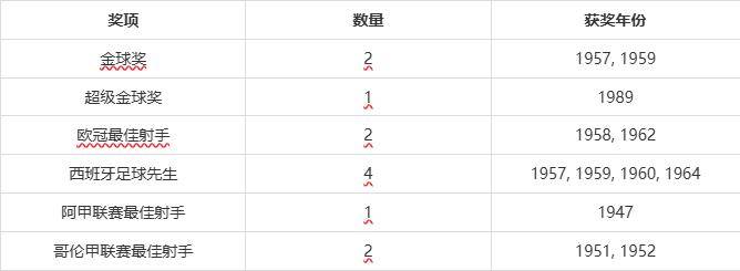 20世纪50年代末,迪斯蒂法诺拿下了最初两届金球奖中的两座,这位当时皇马的头号射手,在1989年创造历史,成为首位超级金球奖得主。