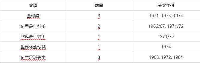 20世纪70年代初,他在四年内三次夺得金球奖,这足以证明他是当时世界顶尖球员,尽管在这份榜单中,他的奖项数少于排在前面的球员。