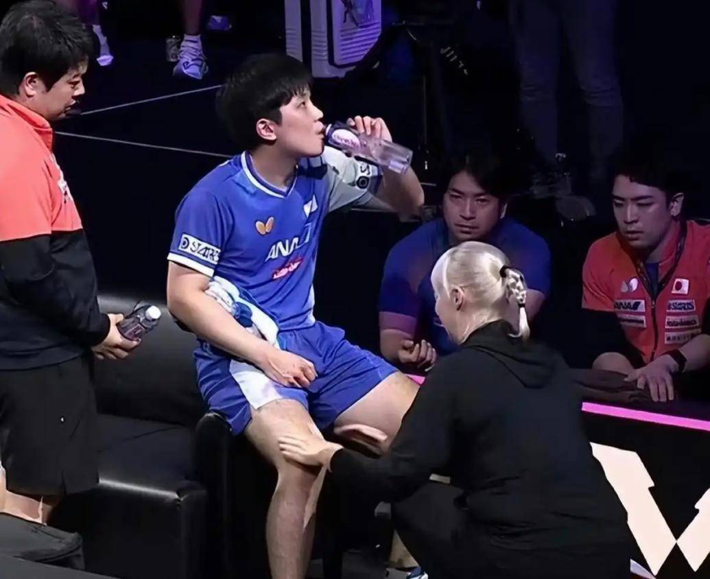 这种身份的撕裂感,直接体现在张本智和的球风上。 他在赛场上以大喊大叫著称,声音尖锐刺耳,赢球后更会做出各种带有挑衅意味的动作。 2025年WTT横滨冠军赛对阵王楚钦时,他竟以“腿部不适”为由,申请了长达七分钟的医疗暂停。 然而,直播画面却显示他声称左膝不适,队医按摩的却是右腿。 更令人啼笑皆非的是,暂停结束后,他在场上的跑动反而更加积极了。